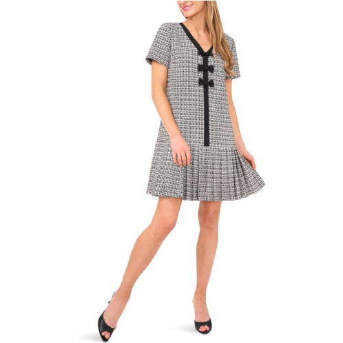 Turn heads and own the moment in the CeCe Pleated Box Combo Bow Dress, a masterclass in elegance with a playful edge. Crafted from structured tweed for that polished, put-together finish, this mini-length A-line silhouette flatters every step with a flirty ruffle hem and sophisticated short sleeves. The V-neckline is outlined in contrast trim, drawing just enough attention, while bold front bow closures infuse retro charm with a fashion-forward twist. It's all about feminine flair with timeless grace, easy to pull on, impossible to forget.