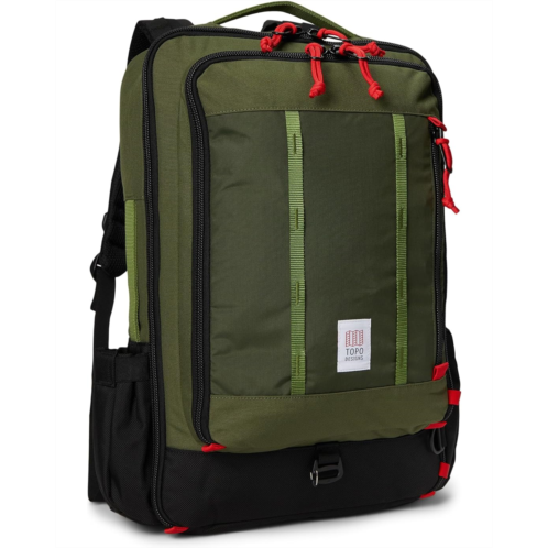 - Your ideal one-bag travel companion, the Topo Designs Global Travel Bag offers 3-way carry (backpack straps, shoulder strap, and grab handles) options, plenty of internal organization, expandable side water bottle pockets, and an external laptop sleeve for easy access. The foam structure with padded recycled ballistic nylon back panel offers added comfort. This travel bag offers a U-shape entry to the large main compartment. The size of the bag is perfect for a long weekend getaway. Carry-on compliant and machine washable, this bag is crafted from soft shell nylon fabric that makes it durable to withstand wear and tear.