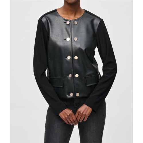 [US] Joseph Ribkoff silky knit leatherette jacket in black