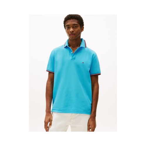 Tommy Hilfiger men's polo. A fresh spin on tradition, this regular-fit polo is made from quick-dry, wicking fabric with ultraviolet protection and features our signature stripe tipping at the cuffs and collar.
