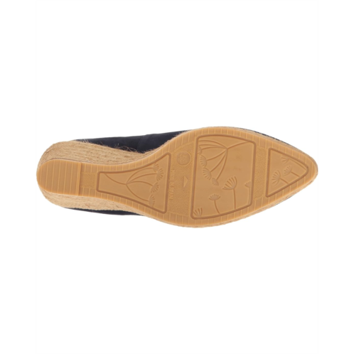 - Jute-wrapped wedge sits atop a durable rubber outsole.
