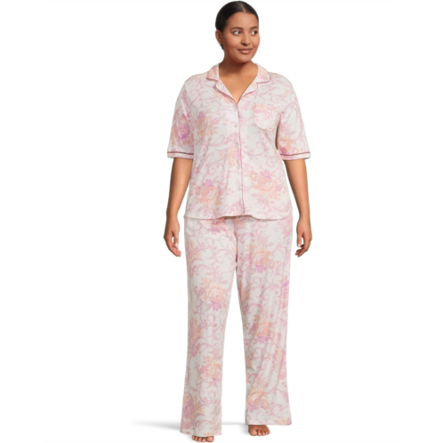 [US] Karen Neuburger Plus Size Romantic Fields Elbow Sleeve Pajama Set with Lace