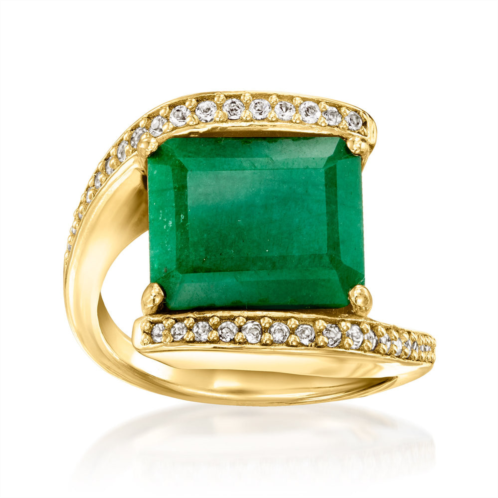 [US] Ross-Simons emerald bypass ring with . white topaz in 18kt gold over sterling