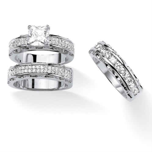 [US] Palm Beach Jewelry 3.10 cttw. silvertone princess-cut cubic zirconia 3-piece wedding ring set