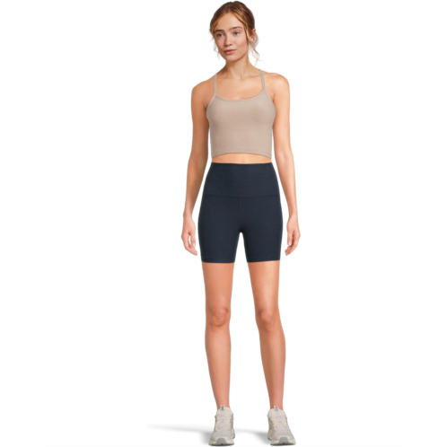 - The goldilocks of biker shorts: not too long, and not a short-short either. The new Beyond Yoga Spacedye Keep Pace Pocket Shorts are already a big hit, and the perfect break from classic long biker shorts when you want to show a bit more leg for added mobility or on hot days. Featuring wide, natural waistband, pockets on hip, high-rise silhouette, flat front, and pull-on style.