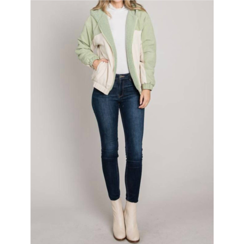 [US] ALLIE ROSE soft brushed matte woven hooded jacket in pistachio cream
