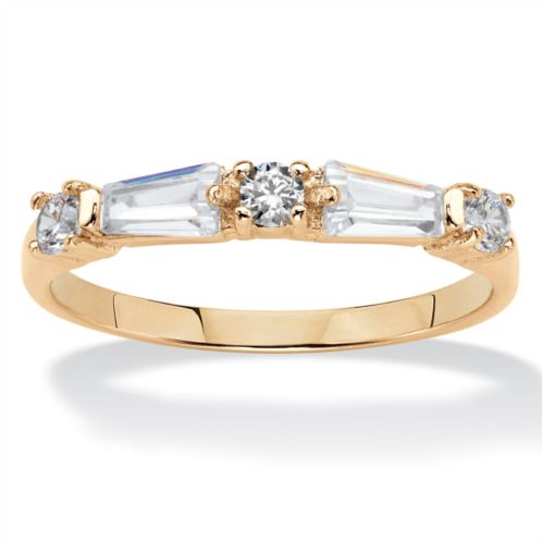 You deserve the sparkling beauty of this band, brilliant with round and baguette cubic zirconia, .56 carat T.W. A look you'll wear with everything. Yellow Gold-Plated. Sizes 5-10.