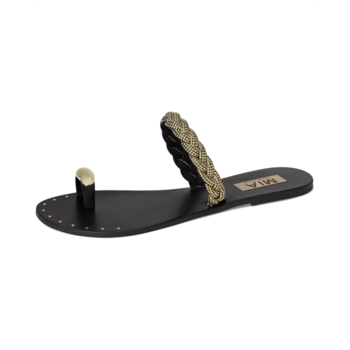 The MIA MLE-Toya is an elevated sandal that brings effortless European flair to your wardrobe. Crafted from flexible genuine leather upper, it features a studded braided strap, hand-made nail head details and a gold hardware toe ring for that perfect touch to elevate your look. The leather lining and anatomical leather footbed add comfort to your feet.