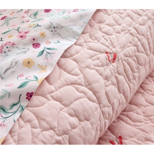They’ll love curling up in these sweet sheets for a catnap or a purr-fect night’s sleep. For kittenish softness and cozy warmth, the charming felines, garden flowers and vibrant butterflies are printed on pure organic cotton.