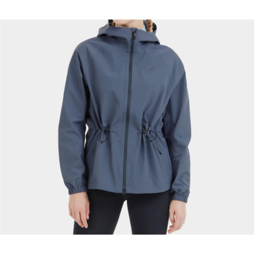 The ultimate cool-girl utility jacket.Introducing the Horse Pilot Raintech Water-repellent Jacket, a must-have for outdoor enthusiasts seeking style and protection. This women's jacket in Vintage Indigo is crafted from a lightweight and 100% recycled nylon material with a 10K/10K waterproof-breathable membrane. It features heat-sealed seams and DWR C0 treatment, ensuring exceptional resistance to rain and wind. Thoughtfully designed in the athleisure trend, this utility jacket includes adjustable elastic straps at the hood and wrists for a perfect fit, with a total weight of 500g for a size S. Care is made easy with machine washing on a synthetic programme at 30° max, spin drying at 600 rpm, and line drying for quick rejuvenation.