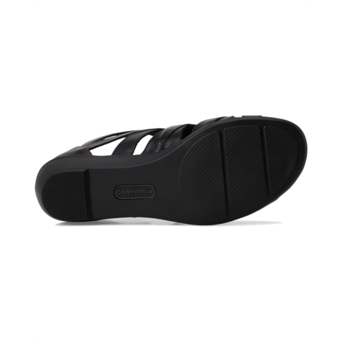 Featuring elastic inserts in the straps, the Comfortiva Eternia ensures a comfortable and flexible fit. The mid-heel wedge adds a touch of elegance while providing stability, and the back zipper allows for easy wear. With a lightweight and flexible rubber outsole, this sandal is perfect for all-day comfort and effortless style.