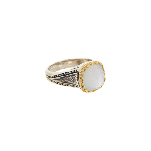 Indulge in the luxurious craftsmanship of the Konstantino Silver & 18K Crystal Doublet Ring. This stunning piece exemplifies the brand's commitment to Greek tradition and elevated hand-crafted design. Crafted from sterling silver and 18-karat yellow gold, this ring features a sparkling crystal doublet as the focal point. Please note that this ring cannot be re-sized, so be sure to select the correct size before ordering. To maintain the beauty of this piece, it is recommended to treat most gemstones to achieve enhanced color and durability. Some treatments may not be permanent and may require special care. Each Konstantino Silver & 18K Crystal Doublet Ring comes with a dust cloth for easy cleaning and maintenance. Imported and available in the women's jewelry rings category, this exquisite piece is sure to make a statement wherever you go.