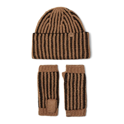 - The UGG Chunky Plaited Set includes a beanie and a pair of fingerless mittens. They are knit in a chunky-plaited design for added dimension and durability. The chunky beanie features a large, cozy cuff and the UGG License Plate leather label on the front, while the mittens have an easy, pull-on design.