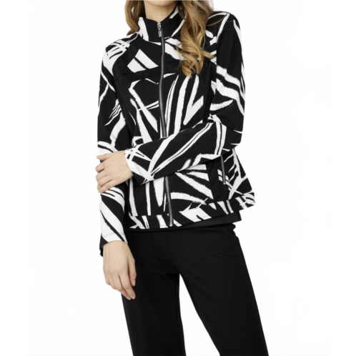 A jacket so versatile you can literally wear it with anything.Presenting the Knit Zip Front Jacket by Frank Lyman, a stylish piece in sophisticated black and white abstract pattern. This hip-length jacket, crafted from 94% Polyester and 6% Elastane, is designed with long, straight sleeves and a collared neckline, perfect for both casual and professional settings. Made in Canada, it features functional side pockets and a convenient zip closure. For care, hand wash is recommended, ensuring your wardrobe essential stays timeless and chic. Approximate length for size 12 is 27 inches (69 cm).