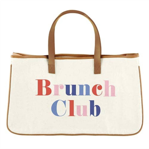 Aside from being the cutest bag ever, this tote is the perfect size to hold all of your vacation necessities. Pair this adorable bag with a flowing dress and some slides and you're all set!CANVAS TOTE WITH GENUINE LEATHER HANDLES - Great to carry nearly everything - groceries, gym, beauty essentials, or a weekend away. LARGE SIZE - Measures 20' W x 11' H x 6' D. BRUNCH CLUB in multicolored hand lettering on white canvas; brown edging and handles add contrast. EASY CARE INSTRUCTIONS - Wipe clean with a damp cloth