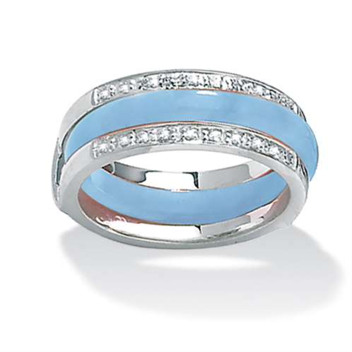 Mix 'n match any outfit with color-rich jade rings that can be interchanged in a sterling silver jacket detailed with cubic zirconia accents, 1/10 carat T.W. Eight-piece set includes green, lavender, pink, blue, red, black and yellow jade rings. Sizes 5-10. As this item contains genuine jade, the actual stone colors may vary slightly.