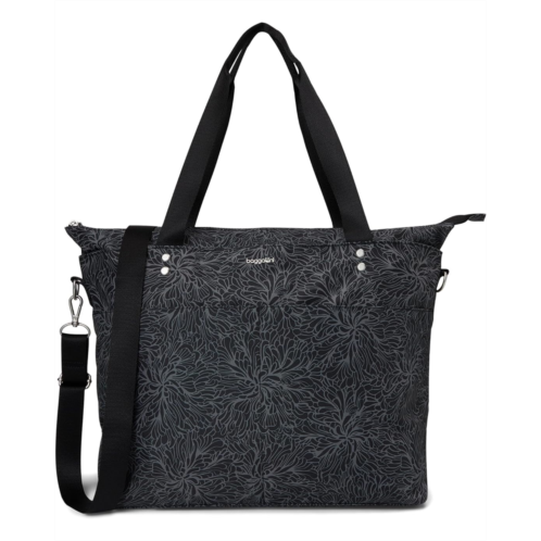 - With the ability to be worn as a shoulder bag or crossbody, this spacious Baggallini Carryall Laptop Tote is a must-have for your work week, upcoming travels, or trips. Store your computer in the secure 15' padded laptop sleeve. For smaller items that require fast access, exterior slip pockets and an anti-theft card wristlet have you covered. Constructed from durable nylon material, this versatile bag features a removable and adjustable crossbody strap, dual grab handles, and a zippered top closure.