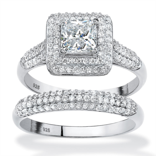 [US] Palm Beach Jewelry 2 piece 1.67 tcw cz halo bridal ring set in platinum-plated sterling silver