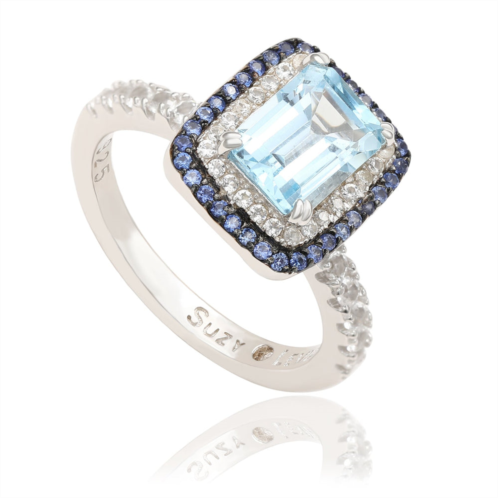 [US] SUZY LEVIAN sterling silver emerald cut blue topaz and sapphire accent ring