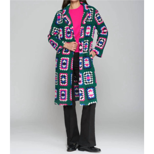 A timeless classic. You'll be reaching for this trench every season.Embodiment of bold and elevated style in a striking Crochet Verde hue. Featuring long sleeves and a notched lapel. Expertly crocheted in Portugal to a midi length, providing a cozy yet sophisticated silhouette. Button front closure adds a classic touch, making it perfect for pairing with a sleek shift dress and boots. Care for this stylish piece with a hand wash; its patterned elegance will complement your winter workwear collection beautifully.