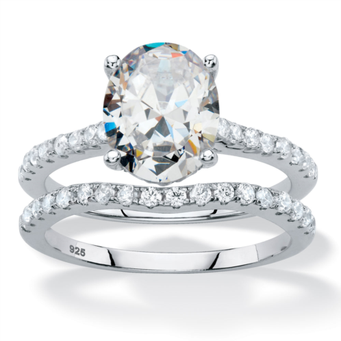 [US] Palm Beach Jewelry 2.90 tcw oval cubic zirconia platinum-plated silver 2-piece bridal ring set