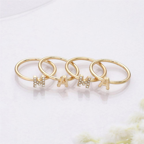 [US] FASHNZFAB 4pcs - mama rhinestone embellished message rings