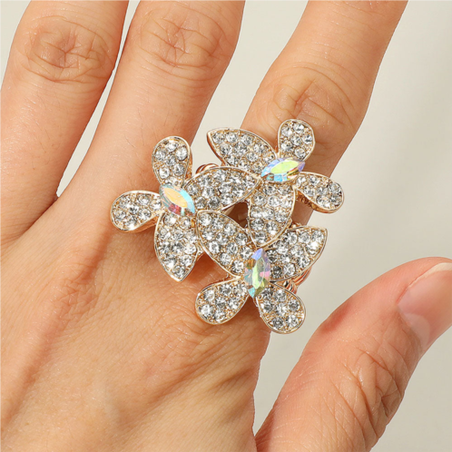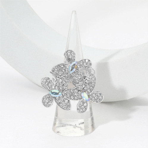 Size - 1.5' HStretchableElevate your style with this dazzling cocktail ring, featuring clustered crystal butterflies and iridescent marquise gems. The adjustable band ensures a perfect fit, while the radiant design adds glamour to any outfit. Ideal for special occasions, parties, or bold everyday wear.