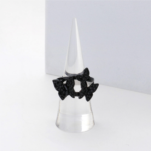 [US] FASHNZFAB rhinestone paved triple butterfly stretch ring