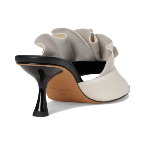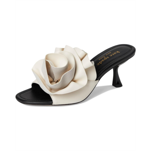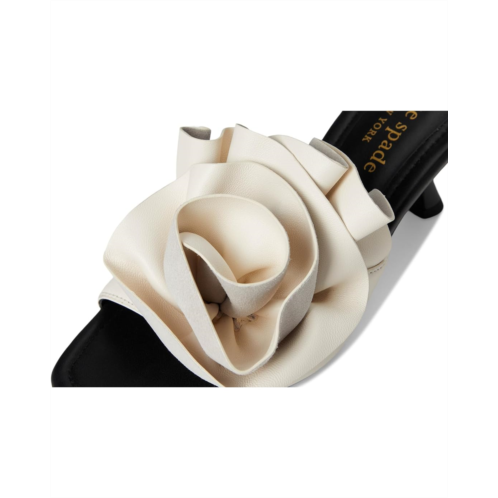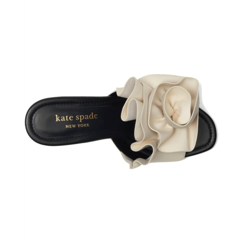Up your footwear game adding this Kate Spade New York Flourish slip-on to your collection. It has leather upper with a 3D flower strap and slide on style. Lined with leather the slip on features open toe, leather insole and wedge platform.