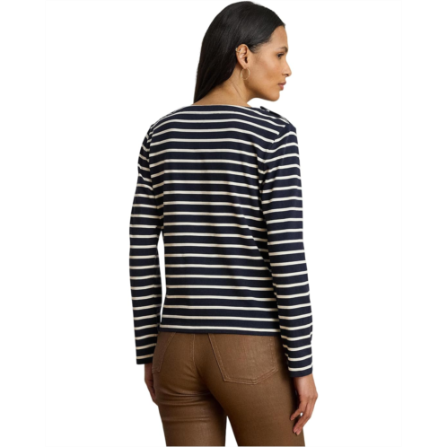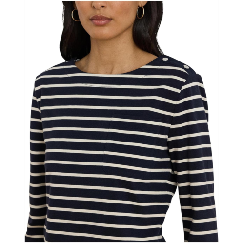 [US] POLO RALPH LAUREN Striped Jersey Snap-Trim Boatneck Top