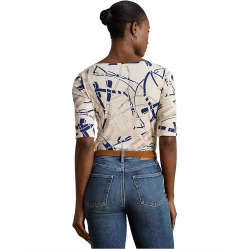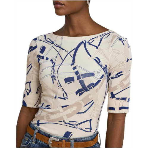 Look and feel gorgeous donning the classic LAUREN Ralph Lauren Belting-Print Cotton Boatneck Tee.