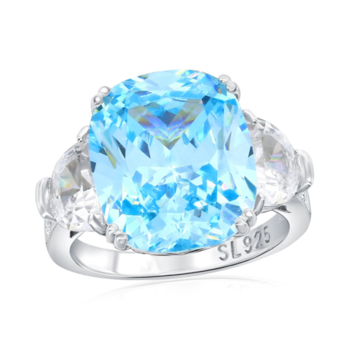 [US] SUZY LEVIAN sterling silver gala firework elongated cushion cut aqua & white cubic zirconia engagement ring
