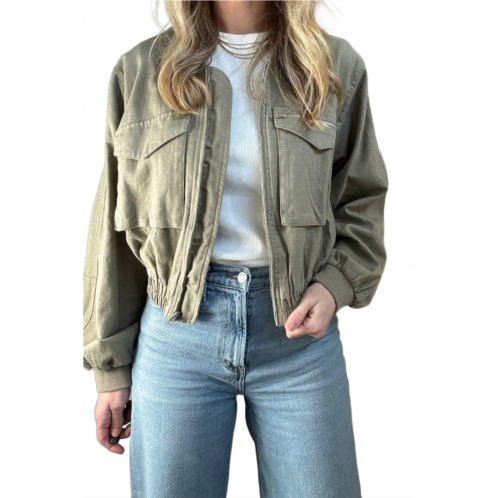 [US] Illa Illa zip up front pocket bomber jacket in olive