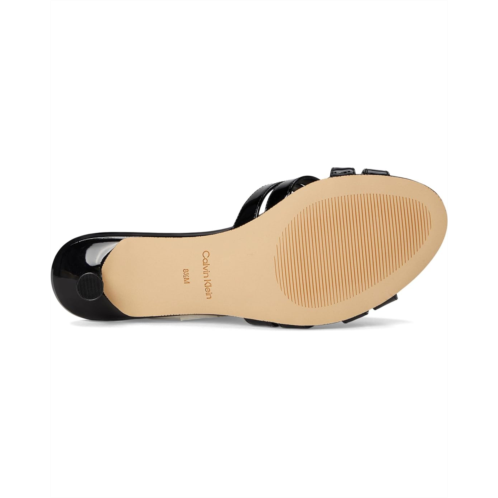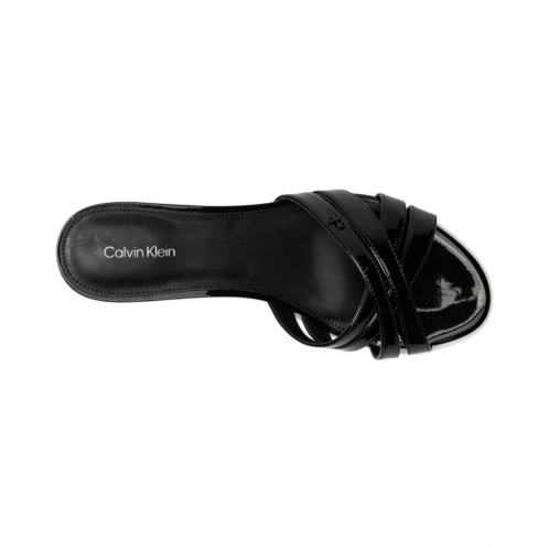 Amp up your style in the Calvin Klein Gabbie dress sandals. These heeled sandals are designed with a faux leather upper, cushioned footbed, and polyurethane lining. They feature an open, round toe shape, slip-on silhouette, and crisscross straps. These slip-on heels will be a staple in your wardrobe.