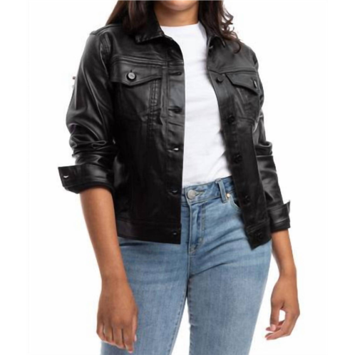 The perfect jean jacket for those slightly crisper days between seasons.Introducing the Classic Coated Denim Jacket by 1822 Denim, a staple in solid black that's perfect for travel and embracing 90s fashion trends. This women's casual jacket features a collar, long sleeves, and practical pockets, making it both stylish and functional. Material - Durable denim delivers a timeless look, while the button closure ensures easy wearability. Designed for easy maintenance, simply spot or wipe clean and lay flat to dry.