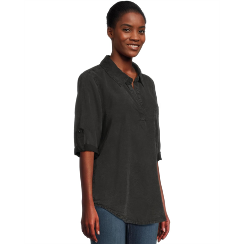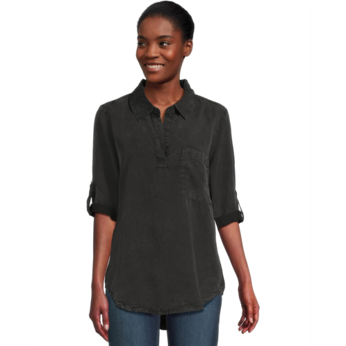 Get ready for the weekend with this laid-back Mod-o-doc Roll Tab Patch Pocket Tunic that with an oversized silhouette and a lightweight linen-blend fabrication.