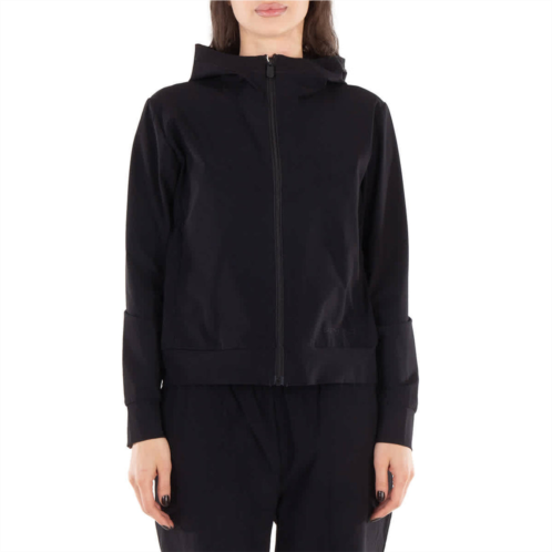 Save The Duck Ladies Outerwear. Fashion category - Coats & Jackets. SKU - DF1166W-RETY18-10000. Color - Black. Save The Duck Pear Zip Hooded Jacket. This modern track featuring ultra-thin, quick-drying, breathable, four-way stretch recycled nylon, offering wrinkle-free, pilling-resistant durability, a high-collar hood for chic coverage, and zip pockets. 78% recycled nylon, 22% elastane.