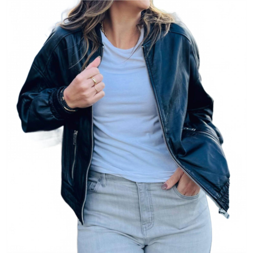 Soft leather, impeccable design. This leather jacket is a win-win.The Irka Leather Jacket by MAURITIUS is a stylish black bomber perfect for a concert-ready look. Crafted from 100% vegetable tanned lambskin leather, this long-sleeve piece features distressed seam details and convenient zipper pockets. Its solid pattern and crewneck design enhance its versatility, making it ideal for pairing with denim. Closure is ensured with a dependable zip closure.