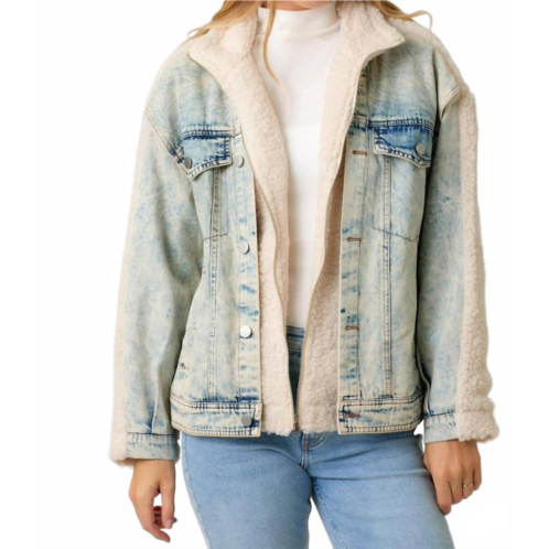 [US] Mystree halfsies denim and sherpa jacket in cream/denim