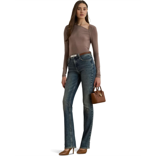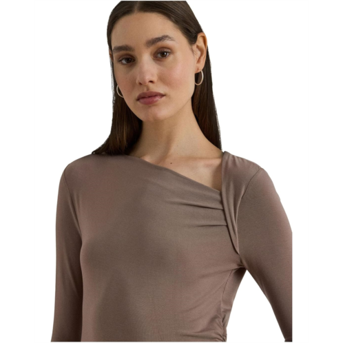 Be the epitome of grace at the next party donning the pull-on style Lauren Ralph Lauren Stretch Jersey Asymmetrical Top. This elegant long-sleeve top features an asymmetrical neckline and a slim silhouette rendered in soft stretch jersey.