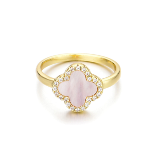 Adornia Women's 14k Gold Plated Mother of Pearl Halo CZ Clover Ring