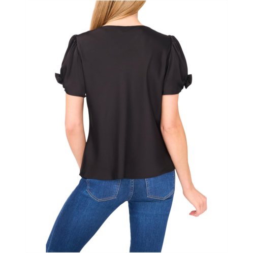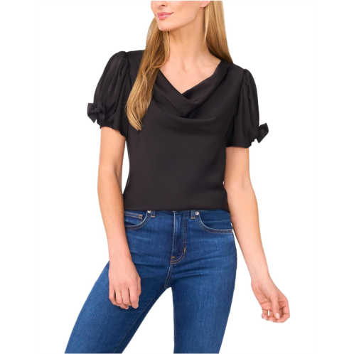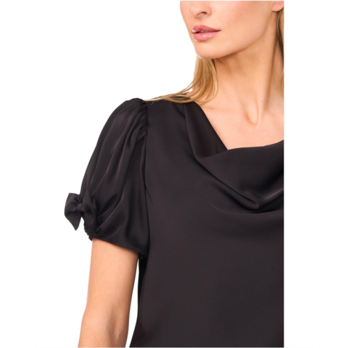 Beyond the basic, the CeCe Cowl Neck Bubble Short Sleeve Top. This charmeuse beauty features a gracefully draped cowl neckline that adds a luxe, flowing silhouette to your look. The short bubble sleeves, finished with dainty bow accents, bring a playful yet polished touch. Designed with a classic fit and effortless pull-on styling, it's the perfect top for transitioning from desk to dinner with ease. The smooth satin finish gives it a subtle sheen that catches the light just right, making it ideal for both understated glamor and bold accessorizing.