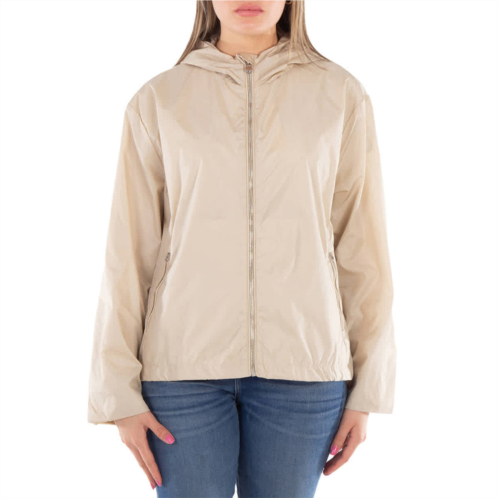 Save The Duck Ladies Outerwear. Fashion category - Coats & Jackets. SKU - D30067W-MEGA18-40034. Color - Beige. Save The Duck Hope Hooded Windbreaker Jacket. The Hope windbreaker features an attached hood, regular fit, long sleeves, a full-length front zipper closure, and is made of 100% nylon.