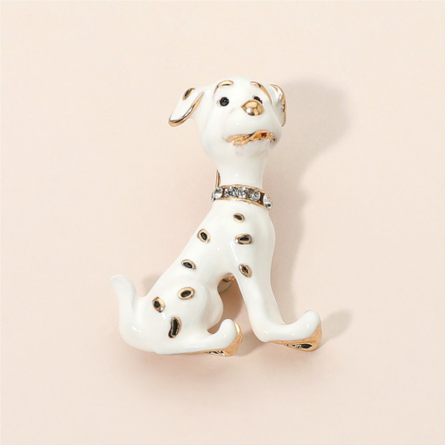 Size - 1.1' X 1.5'Pin BroochAdorable spotted dog brooch featuring a glossy enamel finish, sparkling crystal collar, and gold-toned details. Perfect for dog lovers, this playful accessory adds charm to jackets, scarves, or handbags, making it a unique gift for pet enthusiasts and a stylish addition to any jewelry collection.