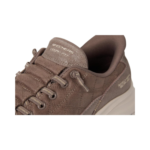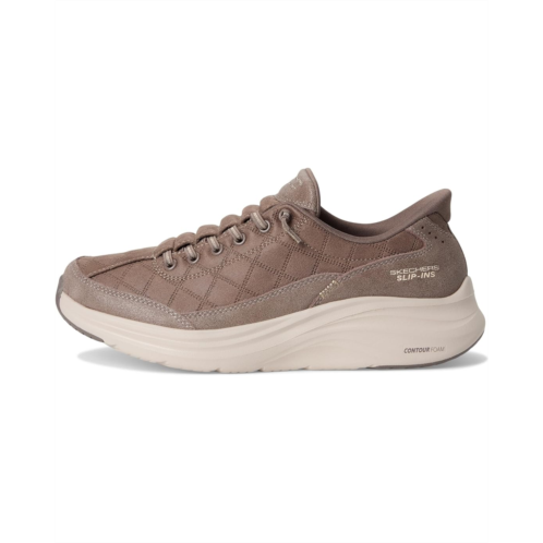 - The Skechers Contour Foam Cozy Fit Hands Free Slip-ins feature Skechers Hands Free Slip-ins technology with an exclusive Heel Pillow that gently holds your foot in placeno bending or tugging required. The upper is crafted from quilted Cozy Fit materials with synthetic overlays and tied-off stretch laces, offering a soft, secure feel. Inside, the Contour Foam midsole delivers lightweight support, while the Skechers Air-Cooled Memory Foam insole adds breathable, responsive cushioning for all-day wear.