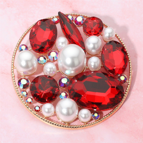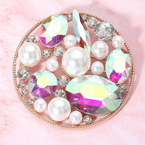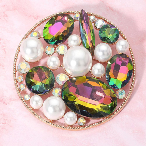 [US] FASHNZFAB pearl stone cluster embellished chunky round pin brooch