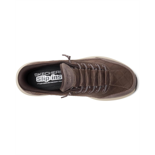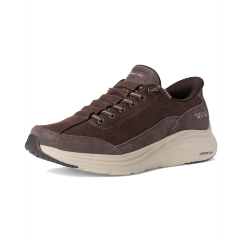 - The Skechers Contour Foam Cozy Fit Hands Free Slip-ins feature Skechers Hands Free Slip-ins technology with an exclusive Heel Pillow that gently holds your foot in placeno bending or tugging required. The upper is crafted from quilted Cozy Fit materials with synthetic overlays and tied-off stretch laces, offering a soft, secure feel. Inside, the Contour Foam midsole delivers lightweight support, while the Skechers Air-Cooled Memory Foam insole adds breathable, responsive cushioning for all-day wear.