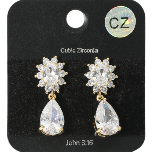 [US] FASHNZFAB teardrop cz stone cluster dangle evening earrings