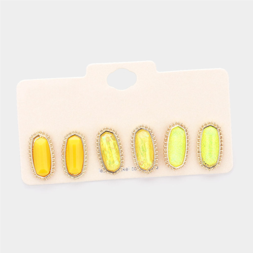 [US] FASHNZFAB 3pairs - gold trim hexagon bead stud earrings