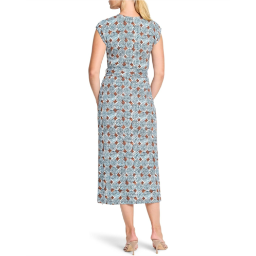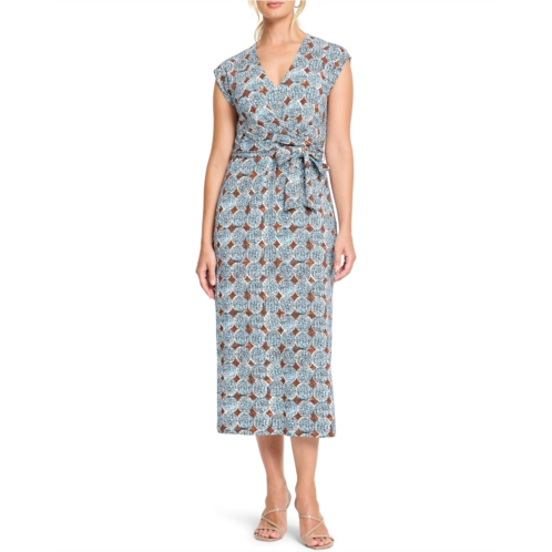 The NIC+ZOE Sand Dollar Stella Dress is designed to mimic the dynamic style of a wrap dress. It offers added convenience with a stitched-closed design to avoid any unexpected wardrobe malfunctions. The self-tie waist adds a customizable touch for a flattering fit. Its cap sleeves and midi length create a polished silhouette, while the knit fabric ensures a soft, drapey feel with just enough stretch for maximum comfort.